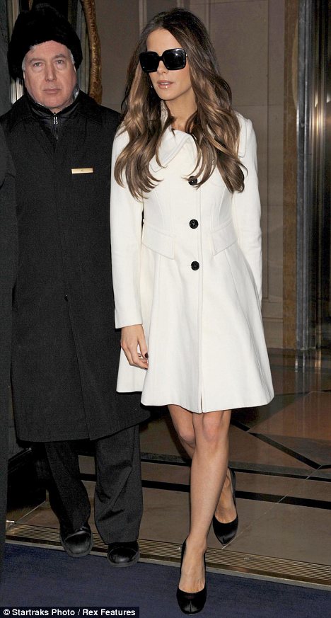 All white on the night: Kate had been sporting a sophisticaed coat earlier in the day