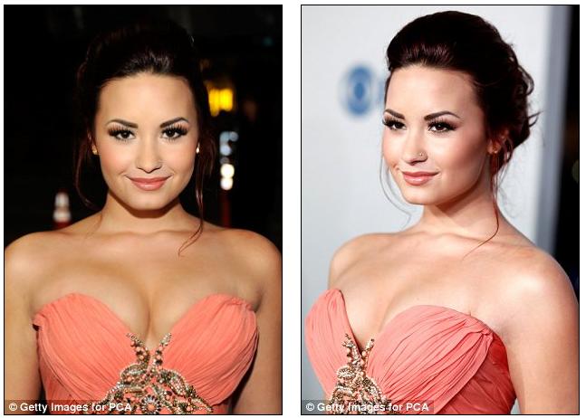 Former Disney star Demi Lovato looked equally stunning in a peach coloured dress by Marchesa which showed off her curves to perfection.