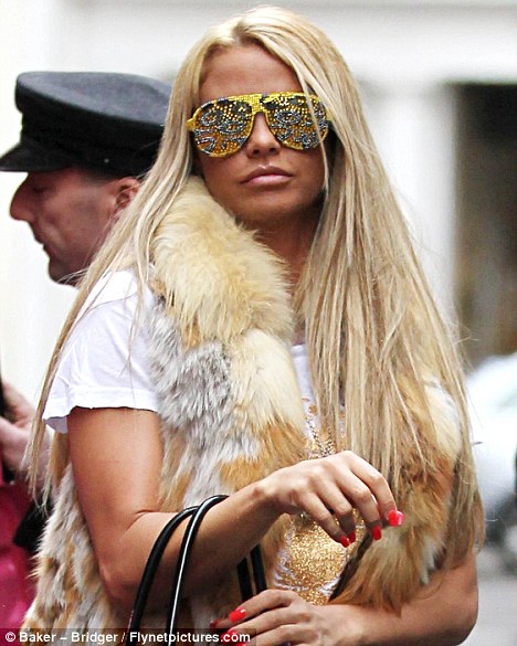 Little impractical? It must have been quite difficult to see through all that diamanteWith the pattern covering her eccentric sunglasses, Katie's vision must have been somewhat obscured.