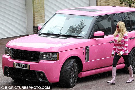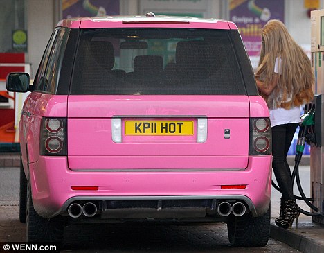 All change: Price shows off her new KPII HOT number plate on her unmistakable pink Range RoverThe change of number plate comes after the couple were rumoured to be back together.