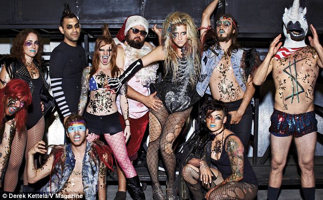 Party girl: Ke$ha and her eccentric team donned outrageous outfits for the photo shoot